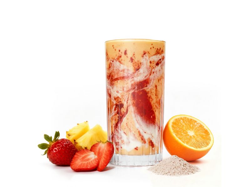 jahody, ananas, kolagen, kokosové mléko, jogurt, pomeranč, jablko